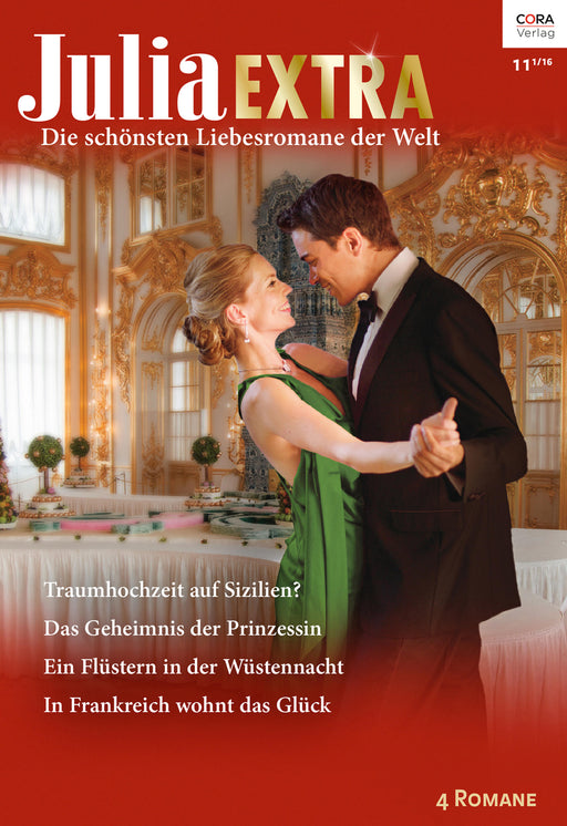 TRAUMHOCHZEIT AUF SIZILIEN? von CINELLI, AMANDAWie soll sie den sexy Millionär nur überzeugen? Hochzeitsplanerin Dara Devlin würde so gern Leo Valentes Castello auf Sizilien für eine Traumhochzeit mieten. Doch er scheint davon nichts zu halten - bis er ihr einen skandalösen Vorschlag macht, der Dara den Atem raubt …DAS GEHEIMNIS DER PRINZESSIN von PARKER, VICTORIAFünf Jahre ist die bezaubernde Liebesnacht her, die Prinzessin Luciana mit Thane de Cervantes verbracht hat - dem größten Feind ihres Königreichs. Niemals darf er erfahren, welche Folgen das hatte! Doch gerade, als Luciana eine Vernunftehe eingehen will, kehrt Thane in ihr Leben zurück …EIN FLÜSTERN IN DER WÜSTENNACHT von KENDRICK, SHARONScheich Saladin Al Mektala weiß, dass Livvy Miller die beste Pferdeflüsterin der Welt ist. Sie muss ihm bei seinem Lieblingspferd helfen - doch sie sagt kühl Nein! Was soll er tun, damit die widerspenstige Engländerin mit ihm in sein Wüstenreich kommt? Sie verführen?IN FRANKREICH WOHNT DAS GLÜCK von ROBERTS, ALISONAuf alles war Alice vorbereitet, als sie beschloss, ihren Vater in Frankreich aufzusuchen. Aber nicht darauf, dass ein umwerfend attraktiver Mann auf dem Château am Mittelmeer sie erst Lügnerin nennt - und dann so heiß küsst, dass sie am liebsten für immer bleiben würde …